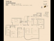 | タイプB | 3Bed | 79万円 (6,900SGD) | 122㎡ (1,313sqft) |