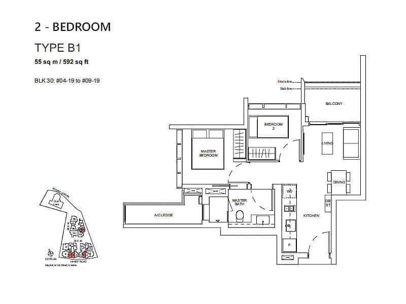 | タイプB | 2Bed | 19,084万円 (1,662,400SGD) | 55㎡ (592sqft) |