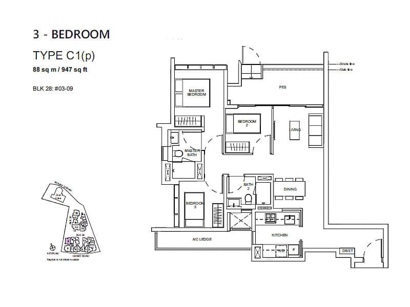 | タイプC | 3Bed | 30,932万円 (2,694,400SGD) | 88㎡ (947sqft) |